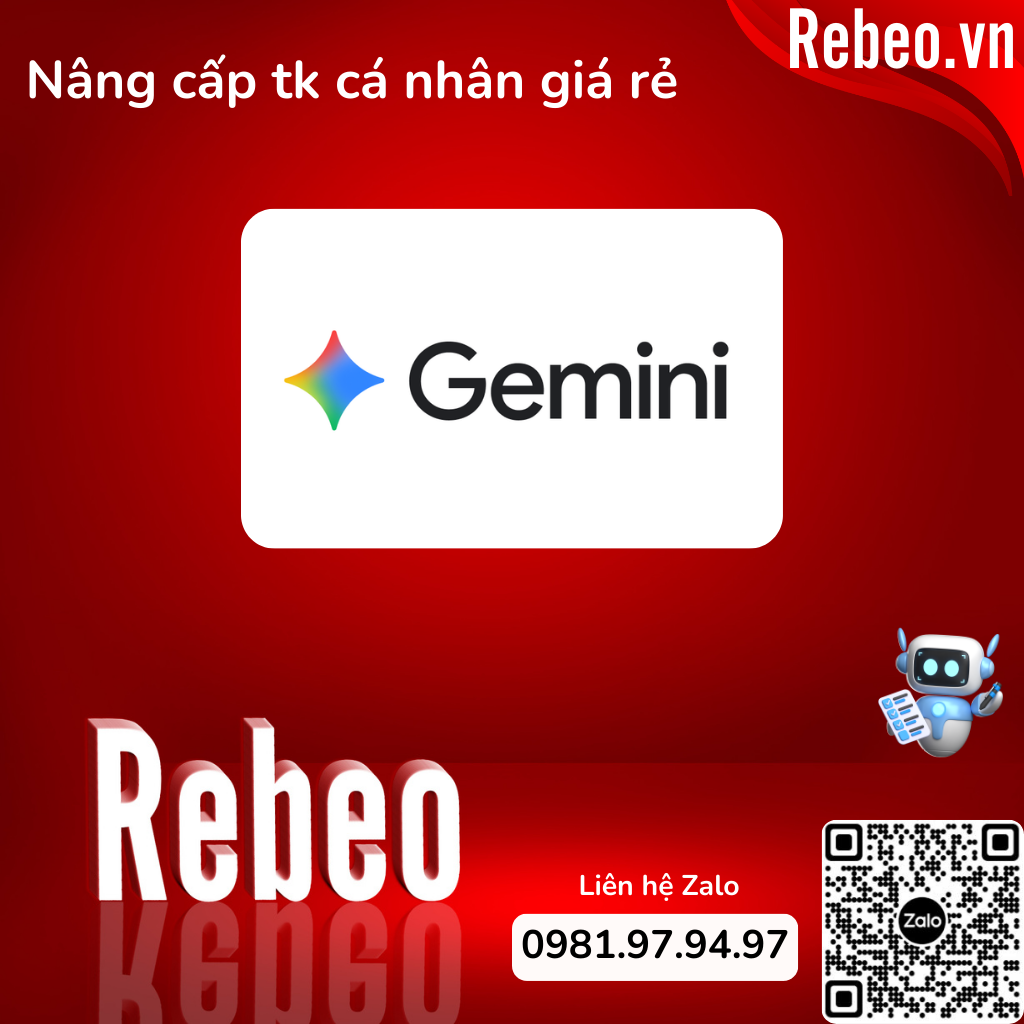 Rebeo Shop cung cấp các gói Gemini Pro (Google AI Pro) chính hãng với mức giá tối ưu, bảo hành rõ ràng, hỗ trợ nhanh chóng, giúp bạn khai thác sức mạnh AI hàng đầu của Google cho công việc, học tập và sáng tạo nội dung.