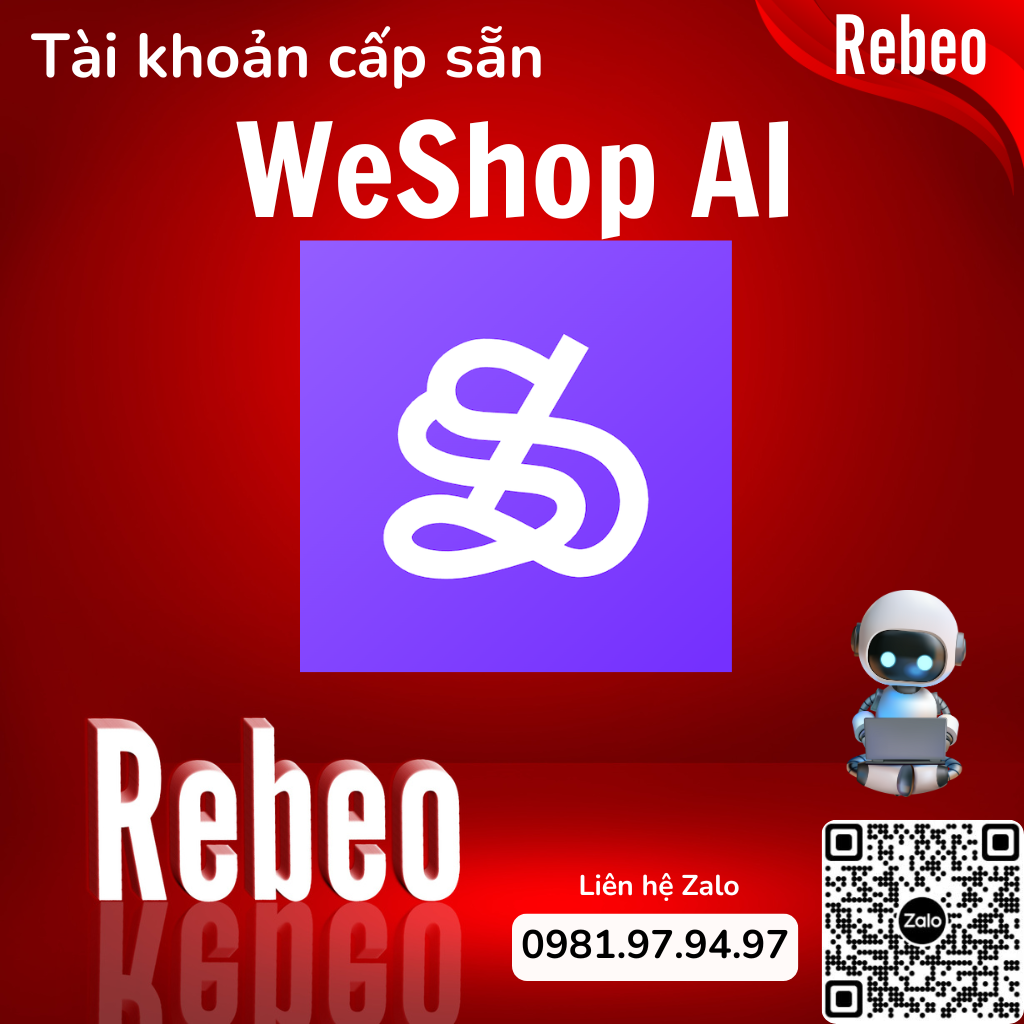 - REBEO Shop có gói dịch vụ tài khoản cấp sẵn WeShop AI 1 tháng 3000 Credits giá rẻ